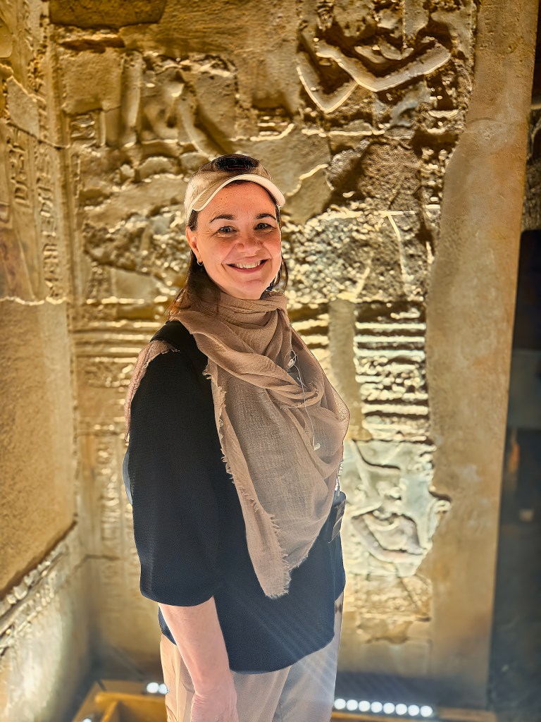 Up to now, Chris and Deborah have been cruising around Lake Nasser. Now they will be cruising on the Nile River, shown behind Chris in this picture.
