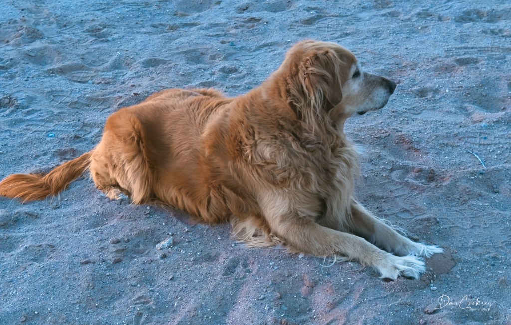 I love going out with Jessie first thing in the morning before waking Betty. It’s the Blue Hour, the hour before sunrise when everything is in a faint, blue hue. The sun is still behind our Sandia Mountain with just a faint glow appearing above the highest point. Everything is cool and quiet. The only exception is the occasional call of a young, male Gambrel Quail looking for a lifetime mate. Jessie loves to lay in the sand and just watch her world go around.